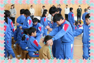 1年生が入学し11日には「1年生を迎える会」が行われました。たくさんのアーチの下を上級生につれられて入場し、プレゼントをもらいました。