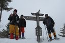 2月11日(月、祝) 川村さん、橋本さん、網蔵さん、レインボー初登場、初スノーシューは雨呼山のロングコース&急斜面の冬山入門コース。軽快に登りのラッセル、下りのダウンヒルを楽しみながら政五郎山頂直下に到着。いよいよ急斜面の腰ラッセル。ひと汗、ふた汗かいて頂上へ。思わずバンザイポーズで写真撮影。充実感に満ち溢れたスノーシューでした。シーズンはまだまだ続きます、また遊びましょう。 |