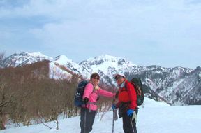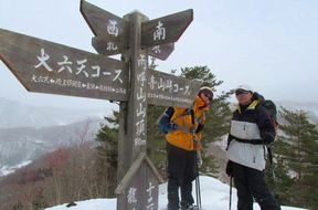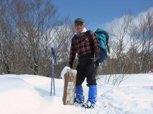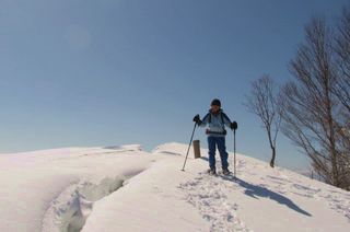 1月16日(水) ベテラン登山家の森川さんのリクエストで鹿俣山にスノーシュー。前日は大荒れの天気、きょうは無風で快晴のもと、最高のパウダースノーを楽しみました。いろんな形のシュカブラがきれい!!山頂直下の急斜面は「腰ラッセル」で、ひと汗かいた。山頂の標柱を掘り起こし写真撮影。浅間山や谷川岳の大展望も楽しめました。次回は2月ですね、待ってますよ。 |