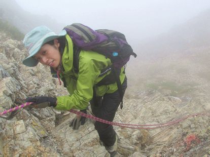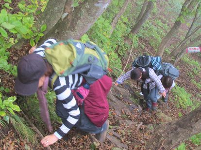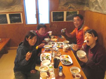 9月28日(土) 国際山岳ガイドの渡辺篤夫先生を迎えてのレインボー登山教室。山歩き初心者という関田さんと一の倉沢で、不整地の歩き方、バランスのとり方を練習しました。沢沿いにはダイモンジソウやアキノキリンソウが咲き、爽やかな風が吹き、気持ちよかった。レインボーに戻り、夕食はバーベキュー。やはり、炭火で焼いたステーキはうまい!!明日は西黒尾根だ!! |