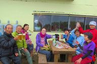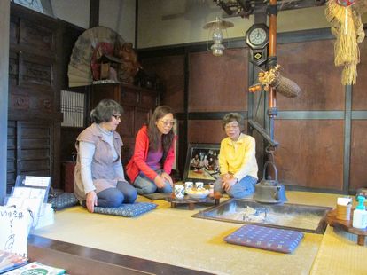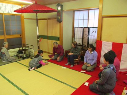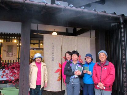 11月24日(日) 10時前、六万騎山に出発。なんと、六日町はどしゃ降り。登山口で思案してたら、駐車場の隣の会館で麓地区の文化祭をしてる。山をやめて文化祭に参加。展示物を見たり、新米のおむすびや豚汁をご馳走になったりする。お茶席まで用意され、お抹茶もご馳走になる。地元の子供や老若男女の方々とふれあい楽しかった。最後は野の花館で絵の鑑賞。皆さま1年間ありがとうございました。 |