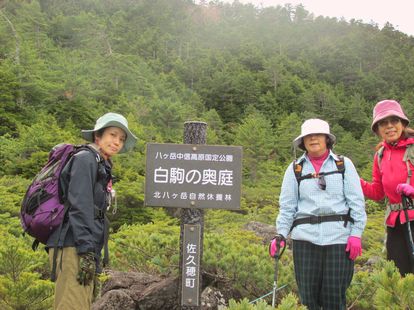 9月29日(日) 西黒尾根登山口、7時前に出発。鉄塔で朝食のおにぎりを食べる。適宜適所で歩き方のレクチャー、実践しながら登る。雲海の上に富士山、南アルプス、苗場山の向こうに北アルプス、先週登った八ヶ岳、至仏山、越後駒ヶ岳、、、素晴らしい展望に感動した。日本三大急登の西黒尾根を、水分補給だけで、3時間休憩なしで山頂まで登った。関田さん、休まなかったけど、いつもより疲れなかった、と言う。渡辺先生のアドバイスはポイントをきちんと教えてくれる。 |
