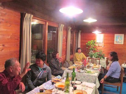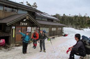3月27日(水) みなかみ山岳ガイド協会の尾瀬ガイドの有志で、研修登山ということで、八ヶ岳に行ってきました。渋の湯の登山口を12;30ごろ出発して、冗談を言いながら歩くと2時間もしないで黒百合ヒュッテに到着。あまりにも早いので中山峠まで散歩する。その後、夕食までワインを飲んでいたら、若い、金子ガイドは西天狗まで登って来たと言いながら、小屋に入ってきた。若いって素晴らしい!! |
