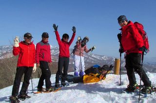3月9日(土) JDバー以来の浅岡さん、ベテラン渡辺さん、お友達の山ガール金子さん、国際山岳ガイドの渡辺先生、仲間の柴野さん、永田さん、大快晴の尼ヶ禿山に登りました。山登りの精鋭たちの集まりに急斜面を求めて楽しくスノーシューしました。山頂からの眺めも至仏山、巻機山、平ヶ岳と感動的なパノラマでした。初心者の山ガール金子さんも大満足した1日でした。 |