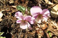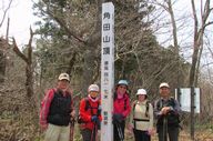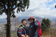 4月13日(土) 山開き山行は天狗山(榛名山)に福島さんとノンビリ歩いた。ポカポカ陽気の中、爽やかな風が気持ちいい。途中、コルで休憩していたら、福島さんが「鏡台山も登ろう。」と言う。大きい岩を越えたらポッカリ山頂に飛び出した。目の前に浅間山、八ヶ岳、奥に北アルプス、すばらしい展望に感激!!この春、最初の花の出会いはエイザンスミレ。夜遅くまで山の話楽しかった。 |