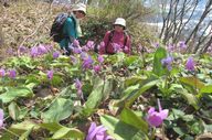 4月16日(火) 下田さんご夫妻、鈴木さん、け○子さんと花の名山角田山に登りました。登山口からイカリソウ、ミスミソウが咲き、カタクリのお花畑に大感動!!蛇が取り持つ縁で、新潟市の今井さんとお知り合いになり、お昼も山行もいっしょでスッゴク楽しいお話に笑い声がたえなかった。山頂でナニワズを見つけ、樋曾山麓でシロギツネノサカズキを見た。寺泊で夕食を仕入れ、楽しい夜に話が尽きなかった。 |