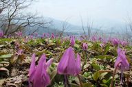 4月17日(水) 下田さんご夫妻、鈴木さん、け○子さん、予定の三峰山を、今、花盛りの六万騎山に変更。登山口からコシノコバイモ、色とりどりのミスミソウ、道沿いにカタクリが咲き、遠くの山々は雪景色。吹く風もちょっと冷たく、ほてった体に気持ちよかった。山頂でノンビリお昼。昼寝までしてしまった。花に囲まれた2日間、サイコー!山頂の桜も咲きだし、今週末あたりがカタクリと桜がいっしょに見られそう。 |