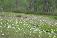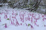 4月21日(日) 満開の桜とカタクリを楽しもうと、子持山を変更して六万騎山へ、柴田さん、金沢さん、山岸さんと登りました。なんと春の大雪で、雪の中に咲くカタクリ、オオヤマサクラに雪がかぶっていたり、スッゴク幻想的な景色に大感動!!見ようと思っていても見られない光景に、じっくり時間をとって楽しみました。帰り、野の花館でお花談義。フェースブックに載せていただきました。 |