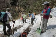 5月21日(火) 尾瀬ガイド協会の人たちと、鳩待峠から山の鼻の間の木道の除雪に行ってきました。今年は残雪が多く、なかなか大変でした。天気もよく景色を眺めながら雪かきをしました。ハトマチ沢にはオオバキスミレが咲きだし、湿原にはミズバショウが咲き、尾瀬ヶ原にもやっと春が来た感じがしました。 |