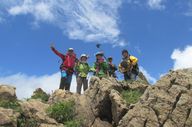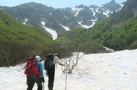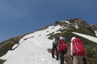 5月26日(日) レインボー登山教室は渡辺先生、浅岡さん、永田さんと谷川岳西黒尾根を登りました。例年より残雪が多く、岩と雪が楽しめました。適所で技術指導や山の話があり、すごく参考になりました。浅岡さん、見違えるように上達し、安定した雪上の歩き方でした。エーデルワイス(ホソバヒナウスユキソウ)も芽を出し、今にも咲きそうでした。 |