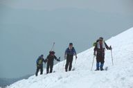 5月6日(月、祝) バックカントリーの酒井さん、昨年頂上まであと10分の所で雷のため下山し、今回再チャレンジの青柳さん、アルペンスキーヤーのアツヤ君、最後の(明日から入山禁止)至仏山で、思いっきり雪を楽しみました。爽快に滑走する酒井さん、アツヤ君。青柳さんと私はスノーシューダウンヒルと尻セードをを楽しみました。水芭蕉も咲き出し尾瀬ヶ原も冬の眠りから覚めそうです。面白かった!! |