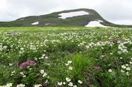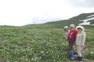 6月15日(土) 東北の山旅は栗駒山。大ベテラン押村さん、下田さんご夫妻、平野さん、け○子さん、にぎやかに巣川温泉を出発。ここのイワカガミは色も鮮やかで素晴らしい!!残雪もあり、近くにイワイチョウが咲き、ミネザクラ、ミネズオウ、ヒナザクラがきれいだった。成瀬温泉「東仙歩」の温泉で汗を流し、夕食宴会に突入!!山も宿も楽しかった!! |