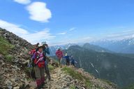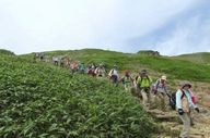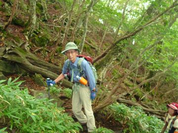 7月18日(木) 花の名峰、尾瀬の笠ヶ岳に中村さん、鈴木さん、木村ガイド、斉藤ガイドと登りました。小笠のお花畑はトキソウ、マイサギソウ、ジョウシュウアズマギクが咲き、笠ヶ岳の直下にはタカネナデシコ、ミヤマムラサキ、イワシモツケ、ムラサキタカネアオヤギソウなど珍しい花のオンパレード。お花たちの出会いが楽しい、オシャベリしながらの素敵な山歩きでした。 |