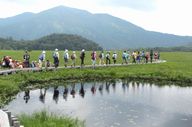 7月22日(月) 5月から続いた尾瀬ヶ原のガイド、8月前の最後のガイドは九州からお越しのツアーで、天気に恵まれ展望と花をじゅうぶん満喫しました。下の大堀川のニッコウキスゲの群落は見ごろです。湿原にはサワギキョウ、ミズチドリ、オオマルバノホロシ、トキソウ、ヒツジグサ、、、が咲き、ハッチョウトンボも飛んでいました。吹く風が冷たく気持ちよいトレッキングでした。 |