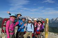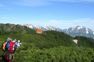 7月31日(水) 6時朝食、6時半過ぎ出発。晴天の稜線歩きは、雲上の楽園散歩といった感じで、気持ちよい。遠くに富士山、八ヶ岳、北岳、甲斐駒ヶ岳、目前には剣岳の雄姿、針ノ木岳、蓮華岳、残雪と緑がまぶしい。爺ヶ岳は女性陣で記念撮影。冷池山荘でリュックを軽くして、鹿島槍ヶ岳に向かう。途中、キヌガサソウ、キソチドリ、ウツボグサが咲き、お花畑にはシナノキンバイ、ハクサンフウロ、イワカガミまで咲いている。12時過ぎに山頂。風もないのでゆっくりお昼。青春時代に縦走した白馬岳からの登山道や、眼下に見えたキレット小屋は懐かしかった。山ガールのかおりちゃんとよしえちゃんは、北峰も登った。小屋に戻ってからの宴会は大盛り上がりになり、森川さんは飲みすぎちゃった?? |