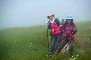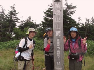 7月26日(金) 山のベテラン真野さん、お友達の中家さん、常連の水野さん、門倉さん姉妹と苗場山に登りました。苗場スキー場のフジロックをBGMに歩く。上の芝でお昼。神楽峰を越え雷清水で休憩。お花畑からはハクサンフウロ、ウスユキソウ、ムカゴトラノオ、、、花の観賞に忙しい。小屋の談話室で北本市から来た山仲間と仲良しになり楽しい食事会になりました。 |