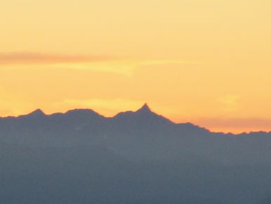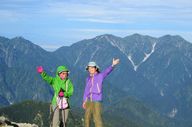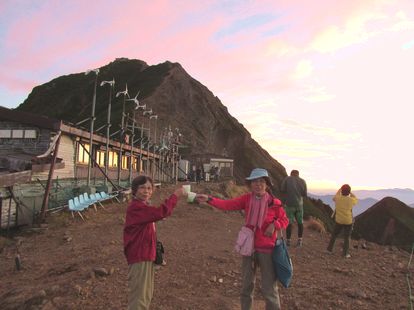 9月17日(火) ベテランの鈴木さん、森川さんと八ヶ岳の縦走を楽しんだ。美濃戸から南沢を行くつもりが、台風の影響で橋が落ち、通行不能。北沢を中山峠越で行くことにする。予定より1時間多く歩くので、すこし早足になった。地蔵尾根から尾根に出ると大展望が待っていた。日の入り、シルエットの槍ヶ岳と穂高岳。天望荘の前で乾杯!!あしたの天気も晴れ、楽しみだ!! |
