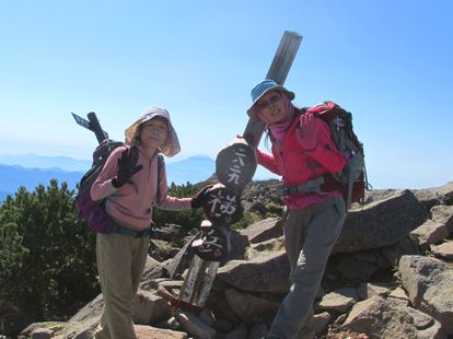 8月26日(月) スノーシューフリークで山のベテラン渡辺さんとお友達の横尾さん、ガイド協会の山ガールで女神のきわこちゃん、楽しく苗場山に登りました。和田小屋を10;00前出発。最初から会話はヒートアップ!!下ノ芝でお昼。神楽峰からはお花たちのお向かえ、リンドウ、ホソバコゴメクサ、タカネナデシコ、シモツケソウ、、、時間をかけてゆっくり登る。山頂に3時過ぎ到着。小屋でワインやビールで乾杯!!夕食後、マッサージしあったり、枕投げしたり、楽しい夜が過ぎていきました。 |