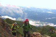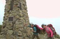 9月3日(火) ベテランの鈴木さんと山ガールのよしえちゃん、八方尾根から唐松岳〜五竜岳の縦走に出発。台風が停滞し秋雨前線を刺激し不安定で雨の予報の中、登山者も少ない。八方ケルンで写真を撮り(左の写真)お昼にする。途中でちょっと降った雨も止み、遠くの景色も見え、テンションがあがる。オシャベリしてたら、唐松岳頂上小屋に着いた。ワインとで乾杯し、明日の晴れを祈る。 |