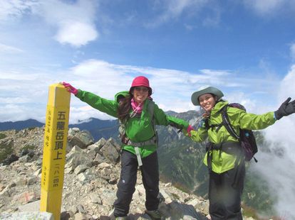 9月4日(水) えっえー!!朝、起きると、外は大快晴ではないか!!5;30朝食、6;30出発で唐松岳へ。山頂からは剣岳、槍ヶ岳、穂高岳、白馬槍ヶ岳、なんと富山湾の日本海まで見えた。鈴木さんもよしえちゃんも大感動!!小屋に戻り、五竜岳へ縦走。青春時代に歩いたこの道、思い出せない。こんな岩場があったんだ、あの時は30K以上背負って登ったんだ、、、いろいろ思い出し懐かしかった。五竜岳の山頂は奇跡的に、私たちが登った30分ぐらい晴れて、後はガスの中。他の登山者が「何も見えなかった。」というが写真のとおり、景色を堪能しました。小屋で乾杯!!、夕食後、私の寝た後、ふたりは談話室でココアを飲みながら、余韻にふけってたみたい。私もココア飲みたかった!! |